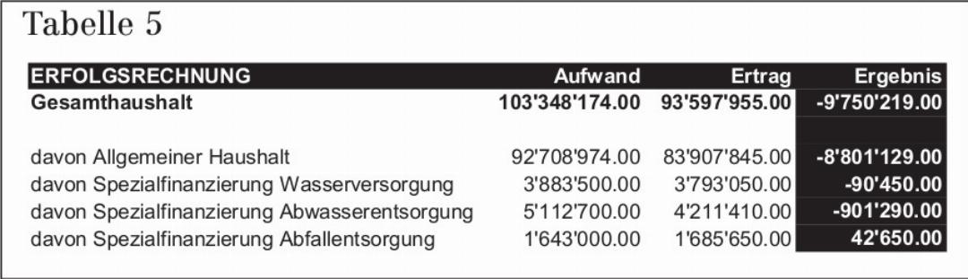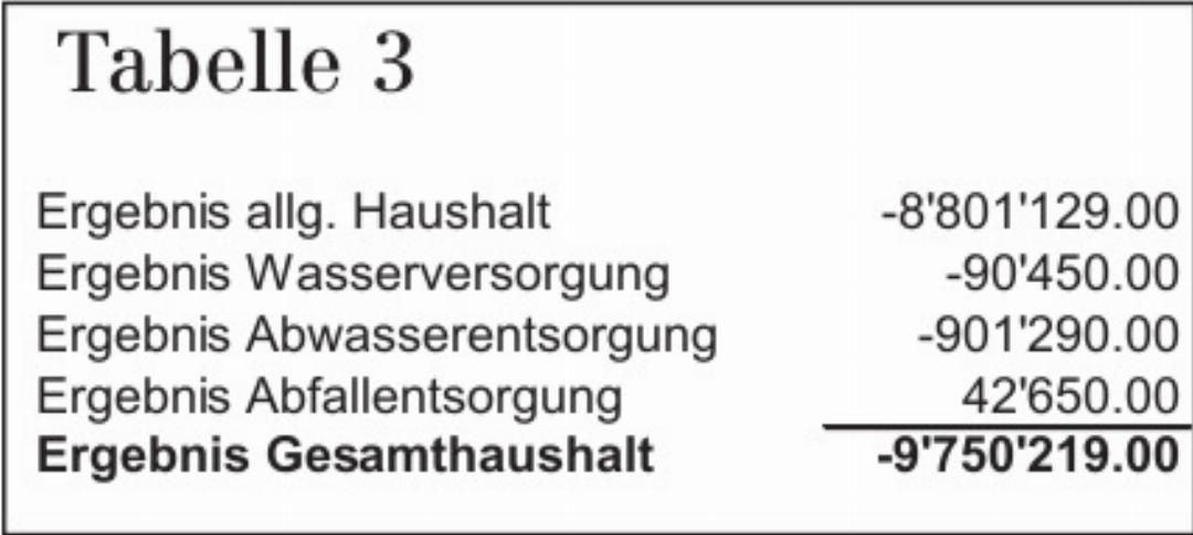 Das Budget 2026 rechnet mit folgenden Ergebnissen (Tabelle 3).