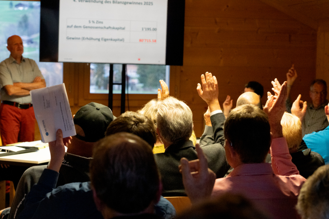 Vom Bilanzgewinn werden fünf Prozent Zins auf das Genossenschaftskapital ausbezahlt, was rund 1195 Franken entspricht. Der verbleibende Gewinn von gut 80’700 Franken wird dem Eigenkapital zugewiesen.