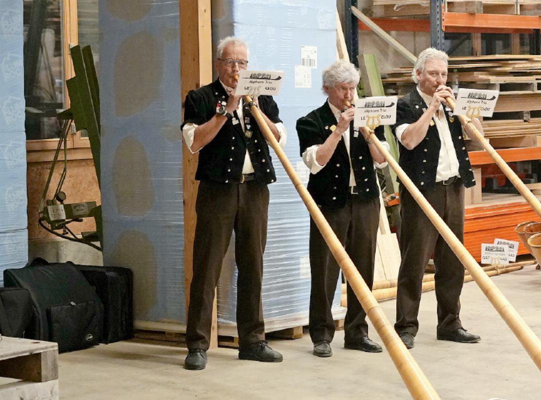 ...Bereits zum dritten Mal lud die Alphorngruppe Gstaad zum Konzert in die Arnold Reuteler Holzbau AG ein. Zwischen Bratwurstduft, Kinderlachen und traditionellen Klängen feierten Musikliebhaber:innen ein stimmungsvolles Fest mit Alphorn, Jodel und Heimatgefühl.