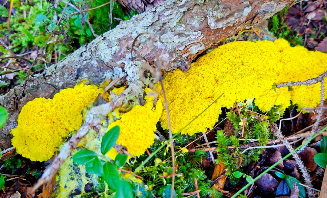 Die Lohblüte – auch Hexenbutter genannt – ist eine der ungewöhnlichsten Pilzarten und gehört zu den sogenannten Schleimpilzen. Das Spezielle an diesem Pilz ist, dass er sich auf Nahrungssuche tatsächlich wie eine Schnecke fortbewegen kann und das mit einer Geschwindigkeit von bis zu einem Zentimeter pro Stunde! Er wächst auf Totholz, ist nicht giftig, wird aber als ungeniessbar bezeichnet. Es sei denn, er wächst in Mexiko, wo er wie Rührei gebraten und gegessen wird.
