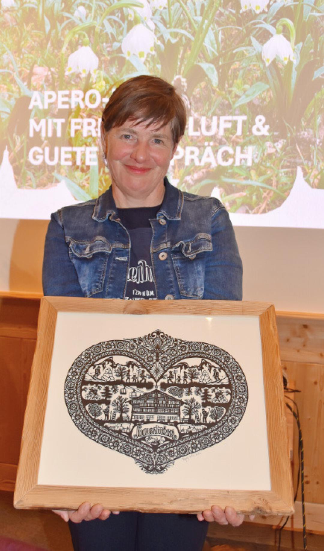 Nach neun Jahren im Vorstand, wovon acht Jahre als Präsidentin, steht Solveig Lanz im obligatorischen Austritt. Im Namen des Vorstands dankte Eliane Welten der scheidenden Präsidentin für deren Engagement. «Der Puls von den Gästen, aber genau gleich auch von den Einheimischen zu spüren, nahe bei den Leuten zu sein, darauf einzugehen und Lösungen zu finden, waren ihr sehr wichtig», betonte Eliane Welten und überreichte ihr im Namen des Vorstands einen Scherenschnitt von Regina Martin.