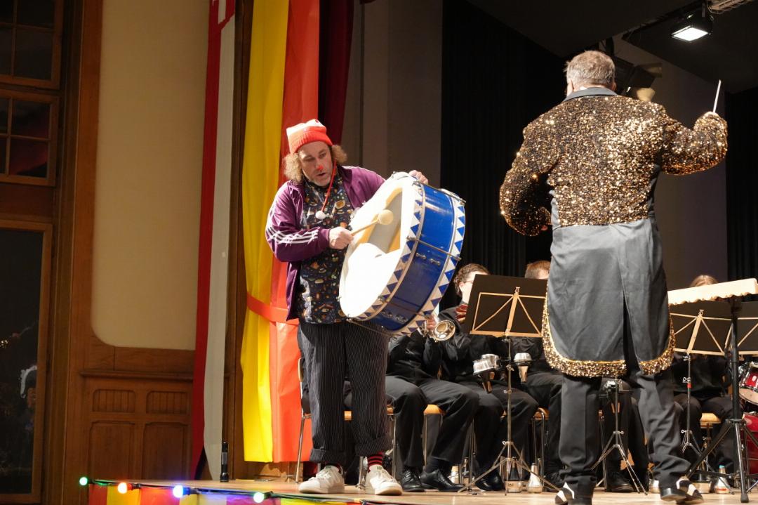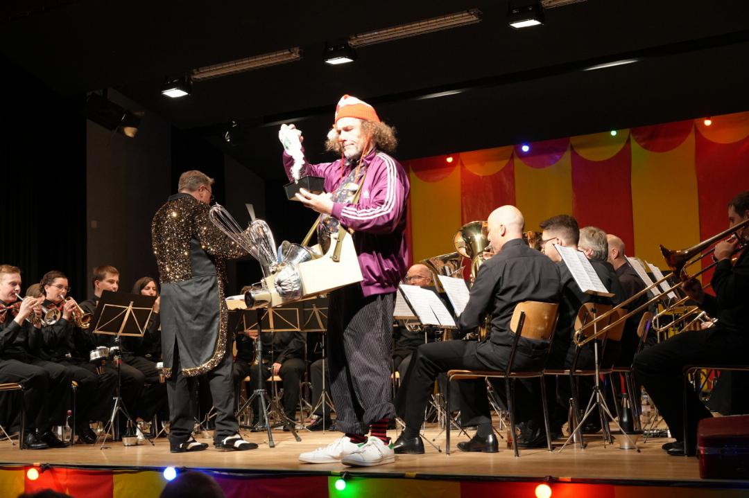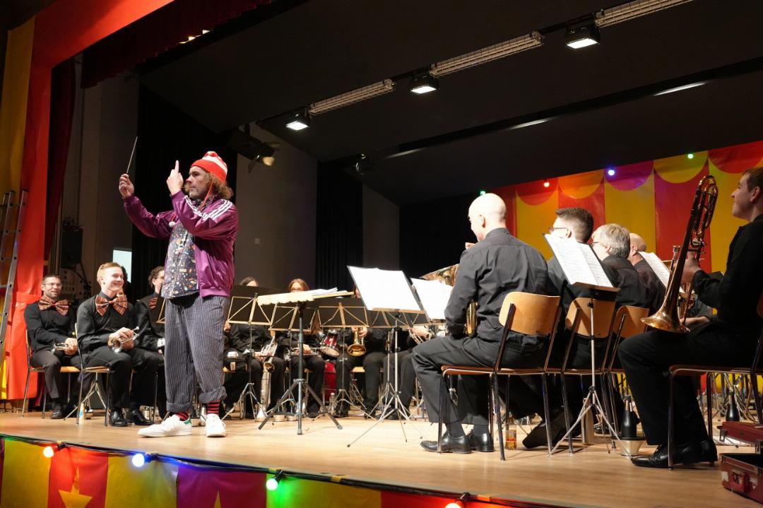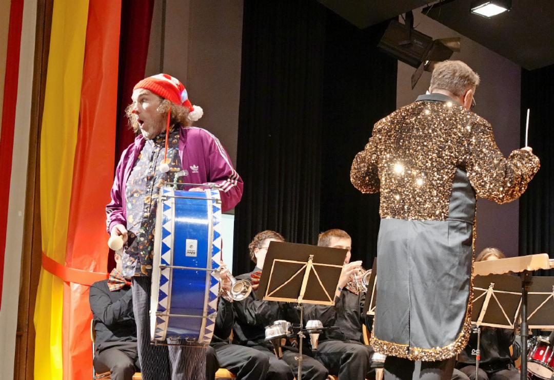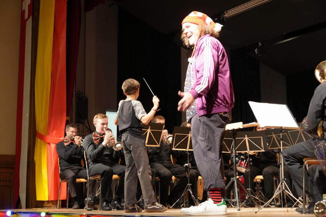 Am Familienkonzert am Nachmittag hatte auch die Bläserklasse der Schule Saanen einen Auftritt. Den Taktstock überliess Michael Bach – diesmal freiwillig – Clown Jeanloup.