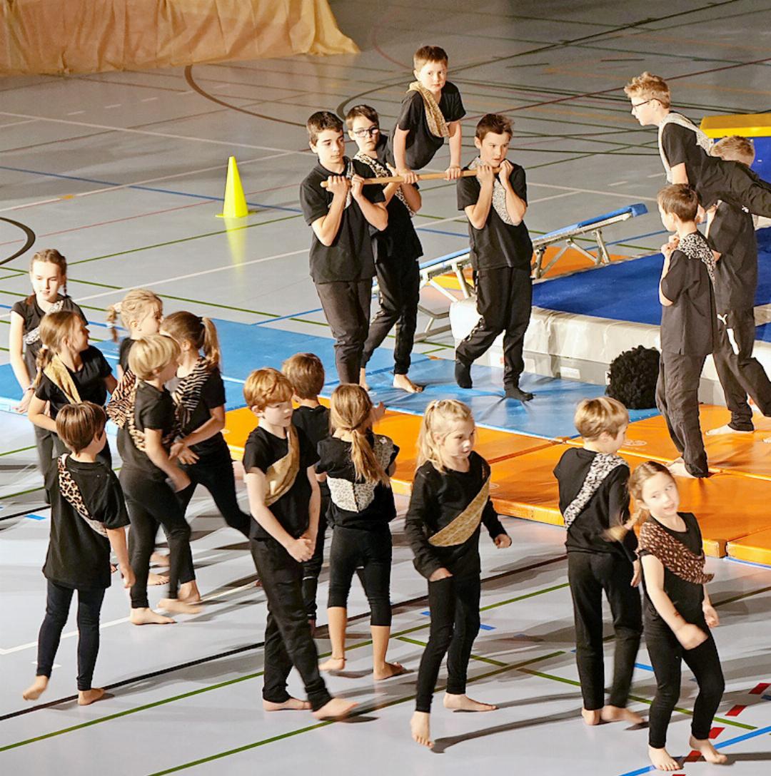 Es wurde dunkel und plötzlich erklang das bekannte «König der Löwen»Lied: Der ewige Kreis (Nants’ Ingonyama). Die Kinder der Polysport- und Gymboys-Gruppe stürmten auf die Bühne. Sie trugen Schärpen mit Tiermustern und teilweise Afro-Perücken, was eine Savannenstimmung erzeugte. Gemeinsam griffen sie zu einem Holzstock und begannen einen Tanz. Zwischendurch zeigten die Kinder verschiedene Kunststücke auf dem Trampolin. Abgerundet wurde die Aufführung mit einer Menschenpyramide.