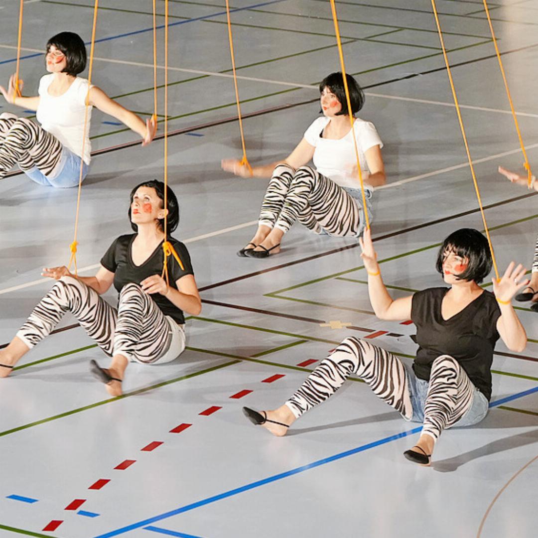 Die Jazzgruppe interpretierte das Thema Fabeltastisch auf eine ganz eigene Weise. Statt klassische Märchen wie beispielsweise Cinderella zu wählen, entschieden sie sich für ein Marionettenspiel. Dafür wurde an einem der Ringe eine Scheibe aufgehängt, auf der eine Hand abgebildet war. Von dieser Scheibe hingen mehrere Seile herab, die als Marionettenfäden dienten. Das Kostüm wurde durch typisches, puppenhaftes Make-up und schwarze Kurzhaarperücken ergänzt. Zu passender Musik tanzten sie an den Marionettenseilen, bis sie sich im Verlauf der Choreografie davon befreiten.