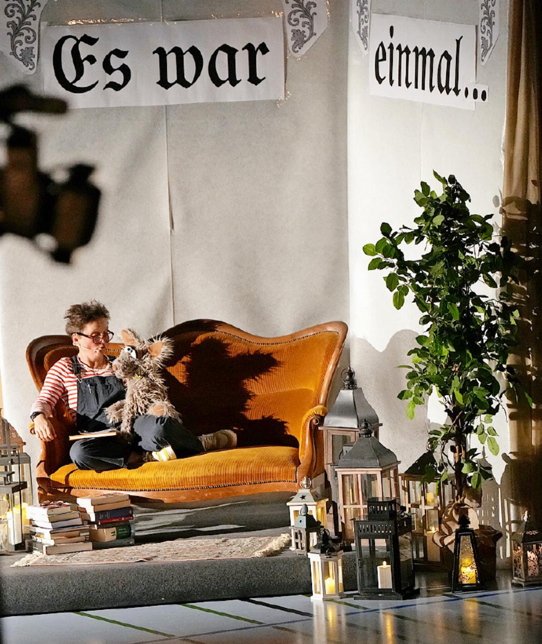Jenny Sterchi erklärte zwischen den Aufführungen Wissenswertes über das jeweilige Märchen: einerseits zur Unterhaltung, andererseits, um den Künstler:innen Zeit zu geben, die nächste Kulisse aufzubauen. Die Moderatorin gab Fakten zu den Märchen zum besten und zog Vergleiche zur modernen Welt. Um die Moderation aufzulockern, hat sie sich einen Partner an die Seite geholt: Giselo, die Handpuppe. Gemeinsam kündigten sie mit humorvollen Einlagen die kommende Aufführung an. Gegen Ende durfte das Publikum noch das Tabaluga-Lied hören, das Jenny Sterchi selbst sang.