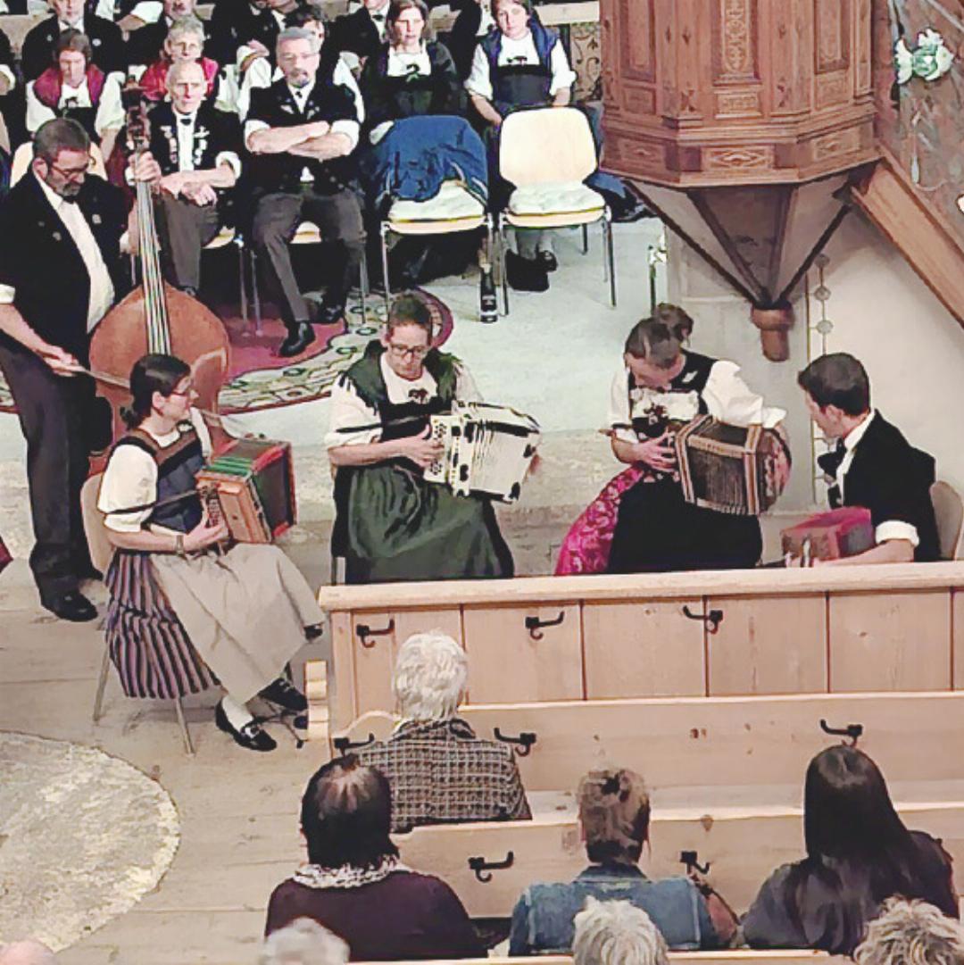 Während der Übungsphase kam der Gedanke auf – da im Chörli Lauenen Mitglieder Örgeli oder Bassgeige spielen – man könnte das Konzert mit Musikstücken bereichern. So trafen sich vier junge Örgelispieler:innen und zwei gestandene Bassgeiger mehrmals zum Üben. Die «Chörli Musig» war geboren.