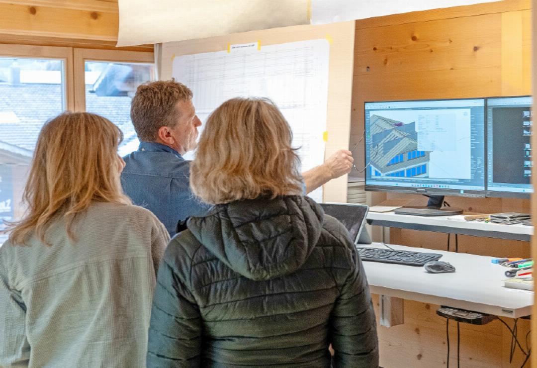 Die Geschichte der Familie ist seit 100 Jahren eng mit dem Holzbau auf Stalden an der Lauenenstrasse verbunden – über vier Generationen hinweg, am selben Standort. Ihren Anfang nahm sie 1925 mit Arnold Annen, der dort eine kleine Sägerei betrieb. Arnold Annen war nicht nur Zimmermann, sondern auch Tüftler: Gemeinsam mit Oswald von Siebenthal wirkte er massgeblich am Bau des ersten «Funi» mit. Es folgten weitere Funischlittenbahnen. Nach dem frühen Tod von Arnold Annen – er starb 1938 im Alter von 53 Jahren – führte die Tochter Luise den Betrieb, bis sie Viktor Burri kennenlernte, der fortan im Betrieb arbeitete. 1954 übernahm Viktor Burri-Annen den Betrieb der Erbengemeinschaft Arnold Annen. 1977 übergaben Viktor und Luise Burri den Betrieb an ihren Sohn Arnold Burri. Und seit 2008 führt Reto Burri den Betrieb in vierter Generation weiter. Auch die Zukunft ist offenbar gesichert: Die 30-jährigen Zwillingssöhne Fabian und Jonas, beide im Holzbau tätig, möchten den Familienbetrieb dereinst in der fünften Generation weiterführen.