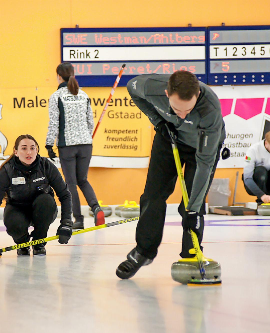 Von den drei Schweizer Teams konnten sich erneut die Olympia-Silbermedaillengewinner von 2018, Jenny Perret/Martin Rios, für die Playoffs qualifizieren. Dort scheiterten sie jedoch knapp am stark aufspielenden schwedischen Duo Westman/Ahlberg.