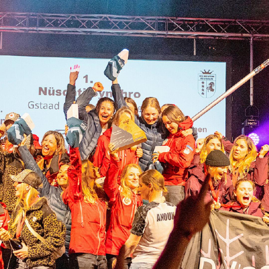 Auch im Formationsfahren der Frauen ging der Titel ins Saanenland. Das Demoteam Nüschti Synchro – mit Natalie Hauswirth, Celine Solenthaler, Magali Thormann, Diana Bühler, Laura Annen, Chantal Reichenbach, Francine Annen, Anna Frei, Julie Trummer und Belinda Schwenter – gewann zum dritten Mal in Folge den Schweizermeistertitel. Entscheidend waren konstante Leistungen im Wettkampf. «Uns sind vier fast fehlerfreie Fahrten gelungen. Das macht uns stolz, denn die Konkurrenz war stark», hält das Team fest. Eine besondere Herausforderung war der steile Demohang. «Hier profitierten wir von den Trainingsmöglichkeiten am Wasserngrat und an den Hublen.»
