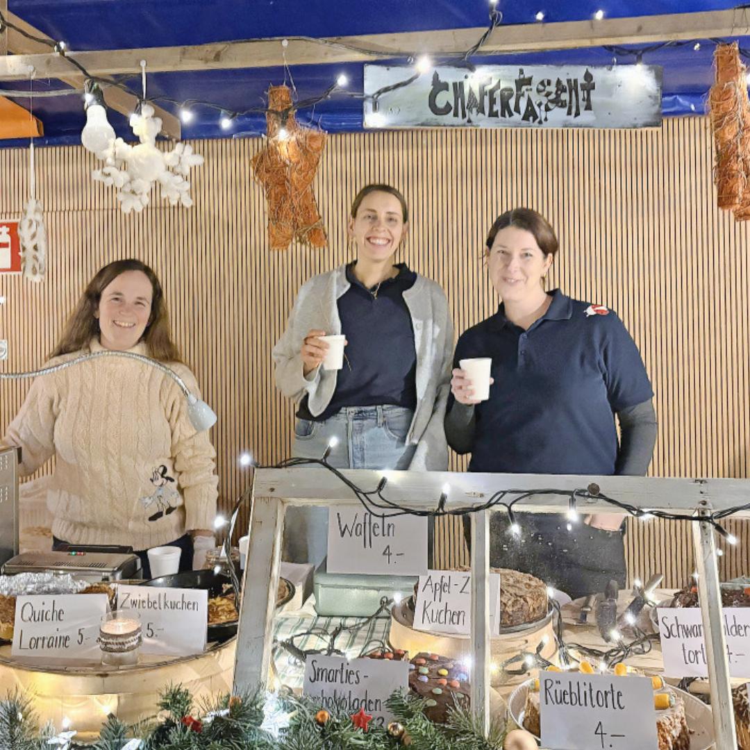 Kurz vor 17 Uhr lag bereits der verführerische Duft von Glühwein, Punsch, Hotdogs und vielen weiteren Leckereien in der Luft. Die Feuerwehr Gsteig warf den Grill an und sorgte mit dem spektakulären und stimmungsvollen Feuerrohr für eine besondere Atmosphäre. Die Mitglieder der «Alpenkomedi» mixten die verschiedenen Glühgetränke. Gleichzeitig heizten die Schülerinnen und Schüler der Schule Gsteig die Fritteusen an, während die zahlreichen Standbetreiber:innen ihren Marktständen den letzten Schliff verliehen.