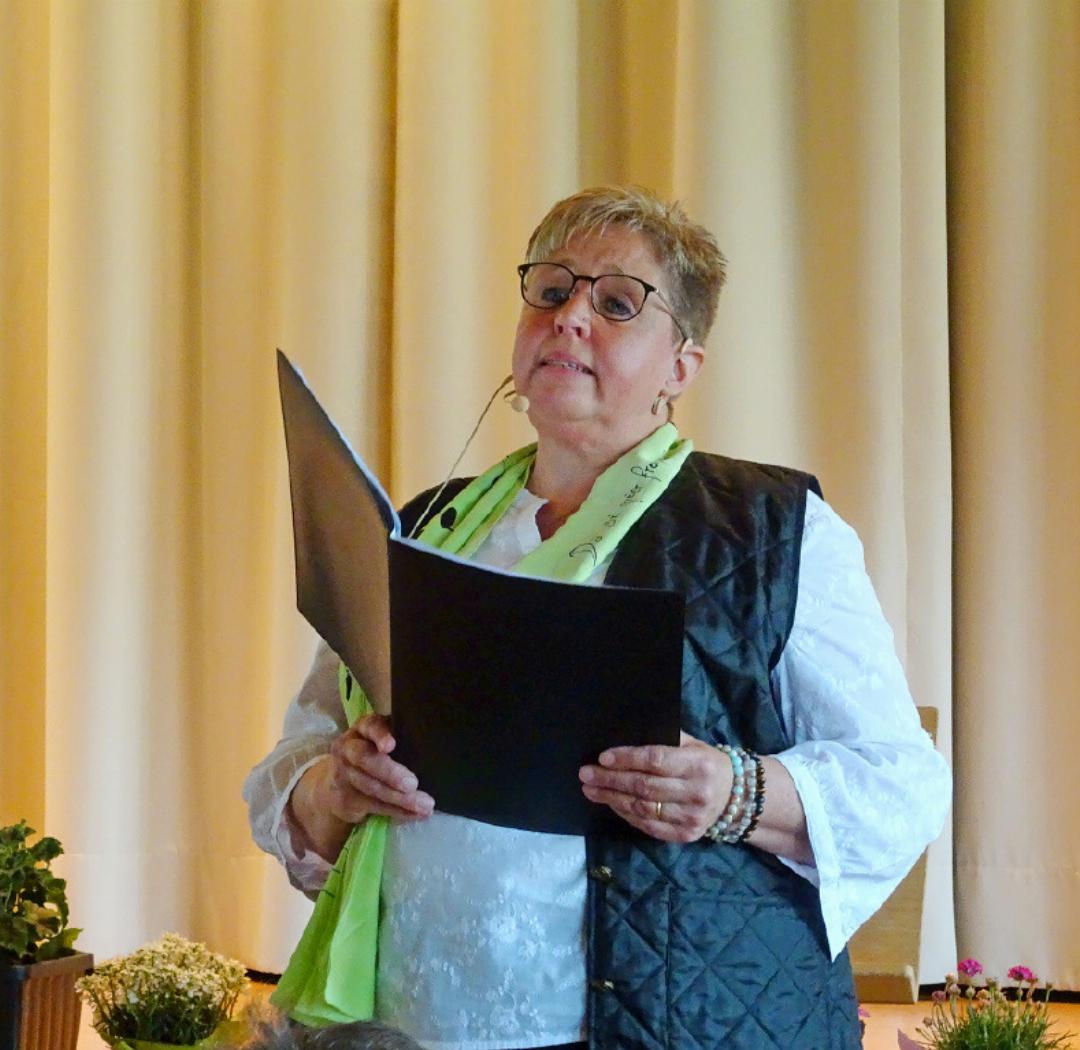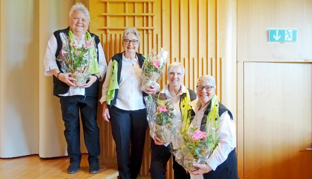 Nach weiteren Vorträgen des Frauenchors gab es noch einmal Gelegenheit, zu gratulieren. Fünf Frauen konnten für eine Mitgliedschaft von 40, 35 oder 30 Jahren mit einem Blumenpräsent und zwei weiteren Strophen des Gratulationsliedes geehrt werden. Es lässt sich kaum nachrechnen, wie viele wöchentliche Übungsabende und Auftritte in all diesen Jahren besucht wurden. Gesellige Anlässe wie Reisen oder Sängertage trugen zu den Freundschaften, die bei so viel Vereinstreue entstehen, bei.