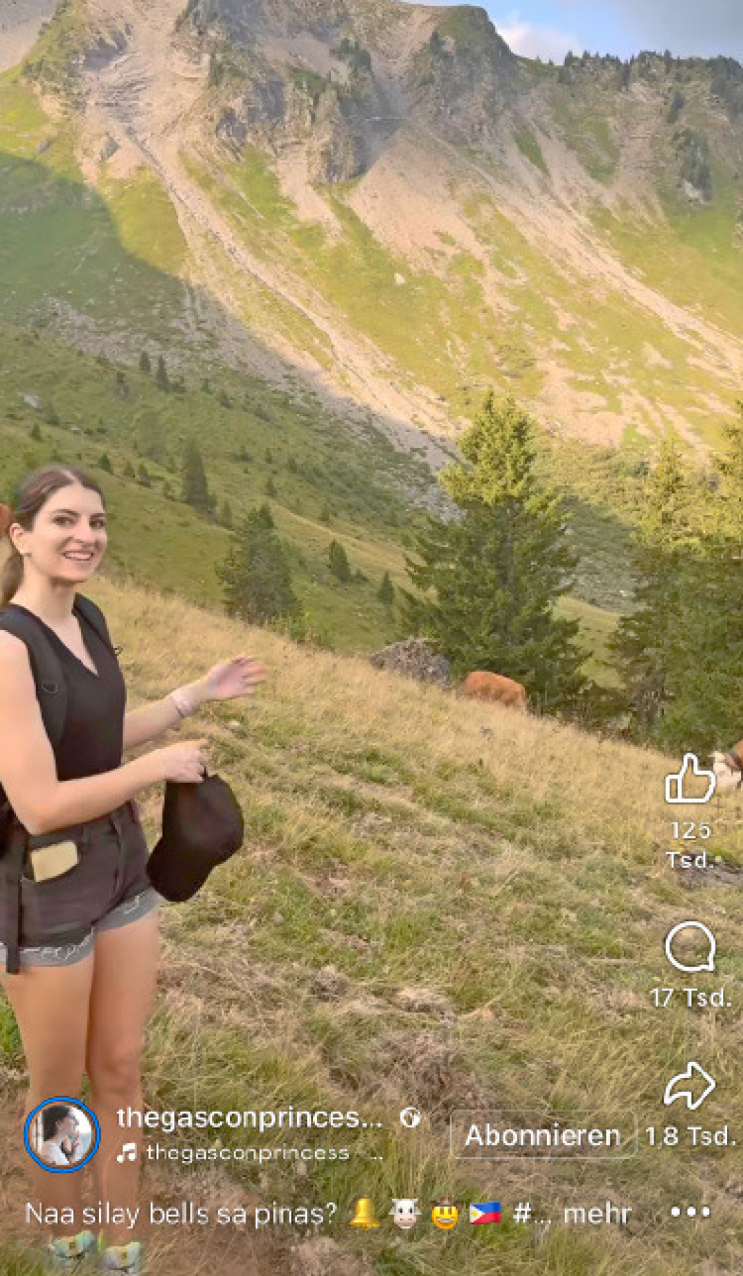 Auch über andere Besonderheiten der Schweiz staunen ihre mehrheitlich philippinischen Follower: Etwa darüber, dass Kühe Glocken tragen oder über die Gondelbahnen in den Bergen.